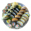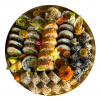Tofu, sałata, ogórek, rzepa, tykwa, awokado, serek, grzyby shitake, gomawakame.